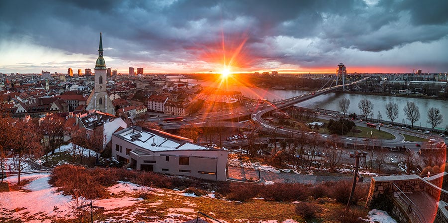 Die Hauptstadt der Slowakei, auch „Schönheit der Donau“ genannt, rühmt sich nicht nur einer reichen Geschichte, sondern auch einer interessanten Gegenwart: Nur 55 Kilometer von Wien entfernt, bilden die beiden Städte den Mittelpunkt der Europaregion Centrope, eine Region mit der dynamischsten Entwicklung in Mitteleuropa.